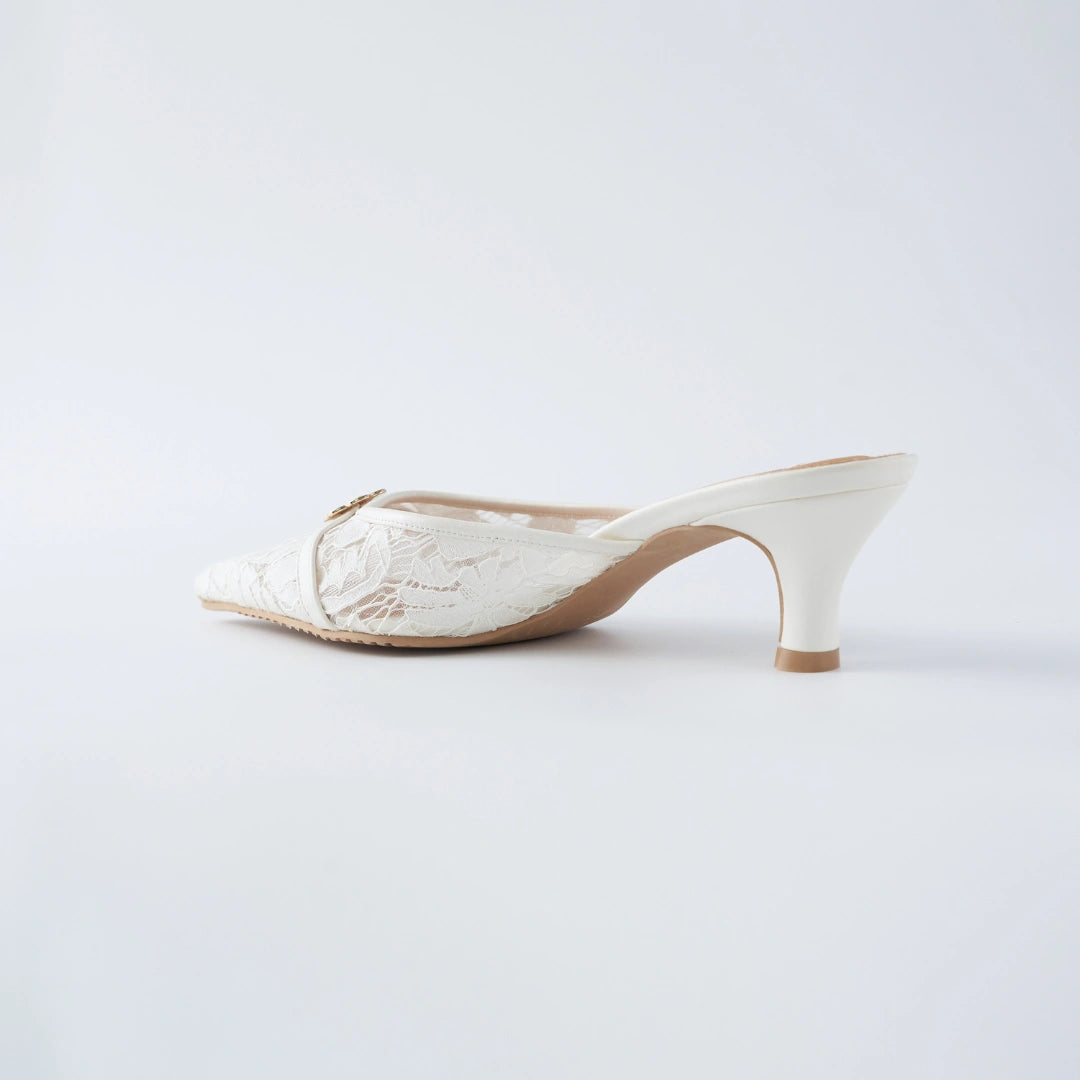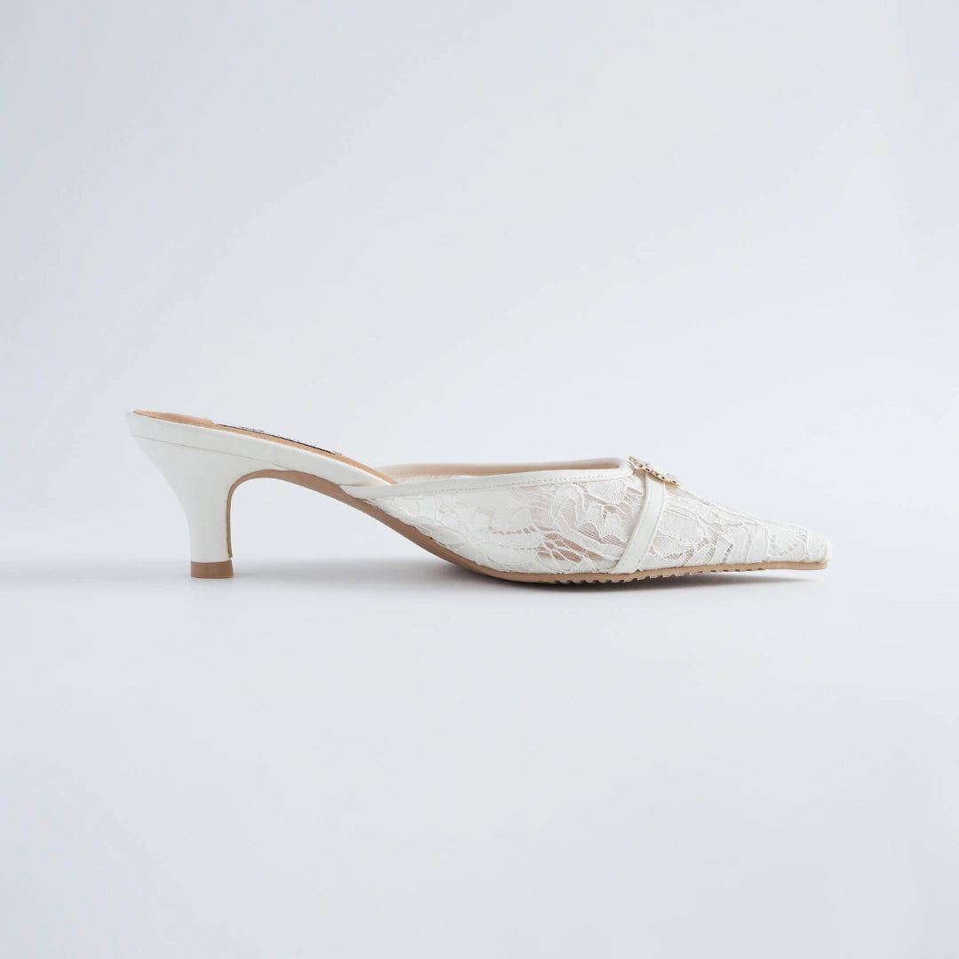 The Lyra Hana Mules in Lace Mesh is a delicate, elegant piece designed to add a soft, feminine touch to your look. Crafted with intricate lace detailing over a pointed toe silhouette, this mules offers a romantic, graceful finish that's great for celebrations, black-tie events and even sophisticated office attire.