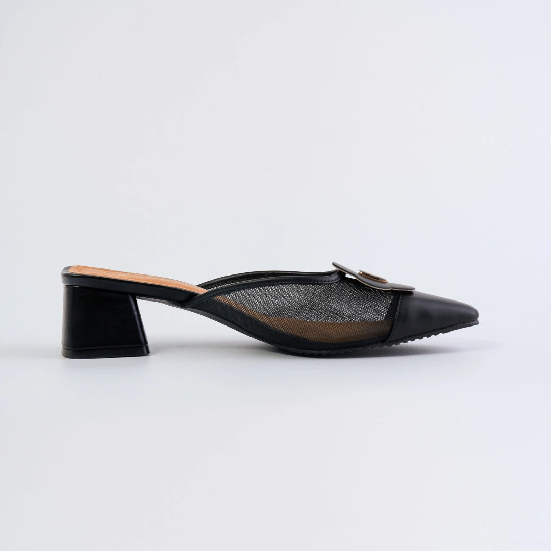 Mesh fabric, paired with a block heel and slim pointed toe front alongside our iconic 6-petal Hana flower? Say less, Moment Mules in Hana Blush are the MOMENT! Ladies, you'll look fabulous walking around the city this Raya season with a pair of Moment Mules. Wrapped in a mature deep black shade, these slip-on mules exudes a feeling of elegant and fashionable. Pair this chic slides with your best Raya outfit for a style and comfort!