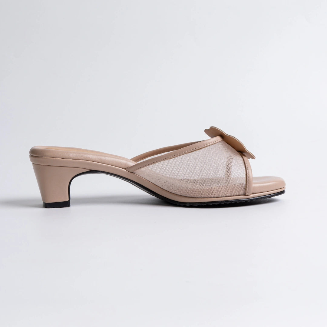 Elevate your style with our Keen Kitten Heels, where elegance is met with our iconic 6-petal Hana flower. Designed in a neutral beige shade, these heels feature a distinctive mesh fabric that adds a touch of modern elegance. Not only does the breathable mesh keep your feet cool and comfortable, but our thick sponge insole and modest kitten heel ensure you never have to choose between comfort and style. Step into the perfect blend of chic and cozy with the Keen Kitten Heels.