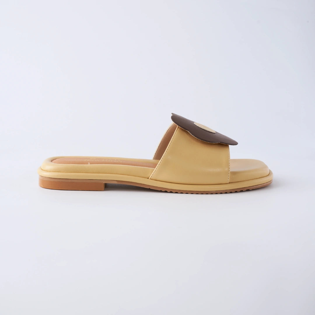 The Hana Fleur Flats is a versatile slip on sandal design that is paired with our iconic 6-petal Hana flower. To match with Asly's collaboration design, the Hana Fleur Flats in Yellow is a striking deep yellow base with a neutral brown Hana flower. Socks friendly design without any toe stopper and a new thin base shoe sole for a lighter lift in your step!
