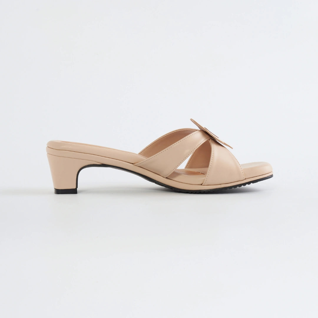 Looking for an everyday heels that would double as a show stopper during Raya season, the Harmony Heels are the pair of mid heels for you! Crafted with the fan favourite criss-cross design, similar to our Kind Kemboja Heels, but now beautifully accompanied by our iconic 6-petal Hana flower. Neutral beige for the straps and flower to make it suitable and cohesive to your outfit! Easy slip-on design to create a less hassling and comfortable wearing experience. Adorable 1.5 inch heel design suitable for all our ladies, ensuring a comfy wear without sacrificing style!