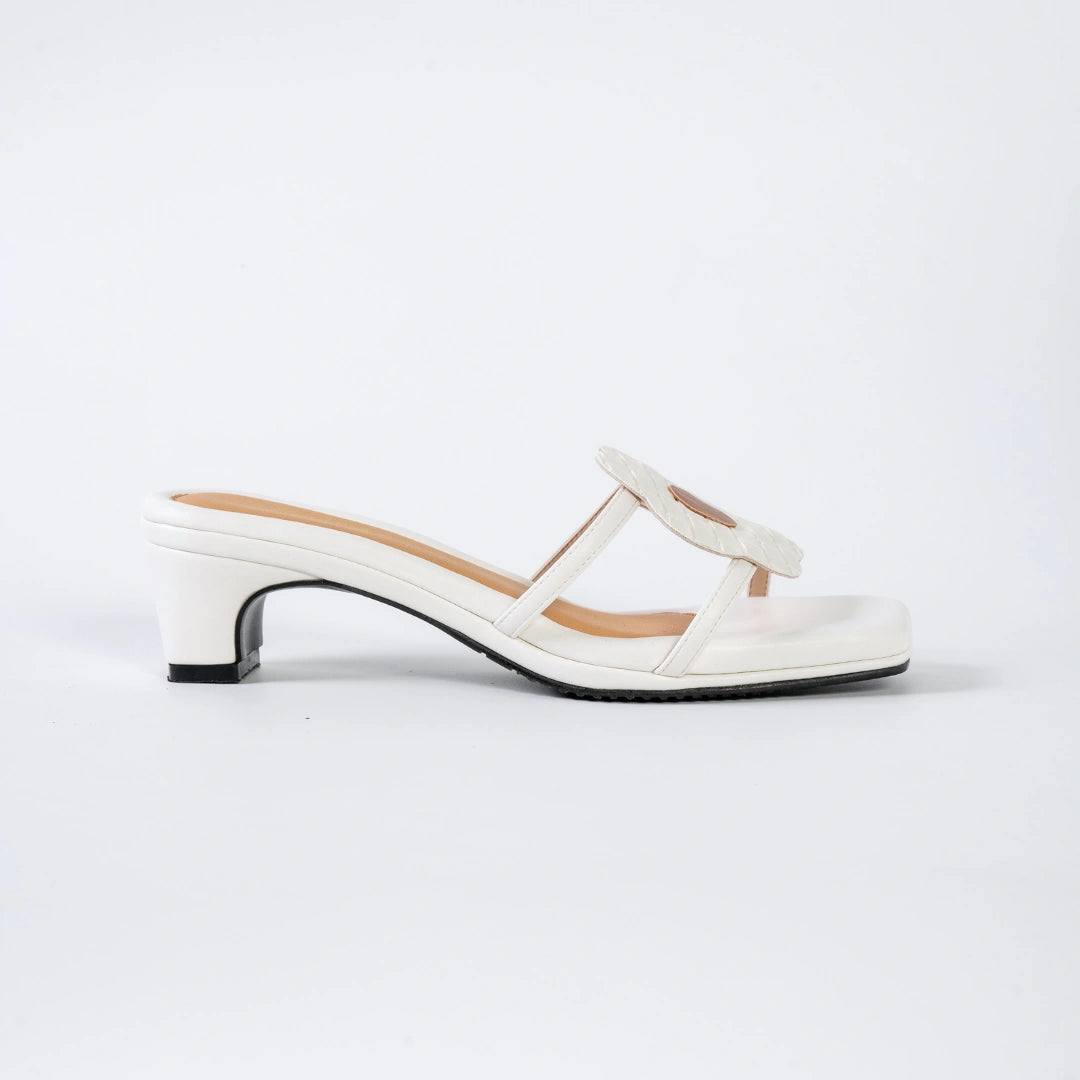Say hello to our new and improved Lady Hana White Heels with a woven Hana flower design!