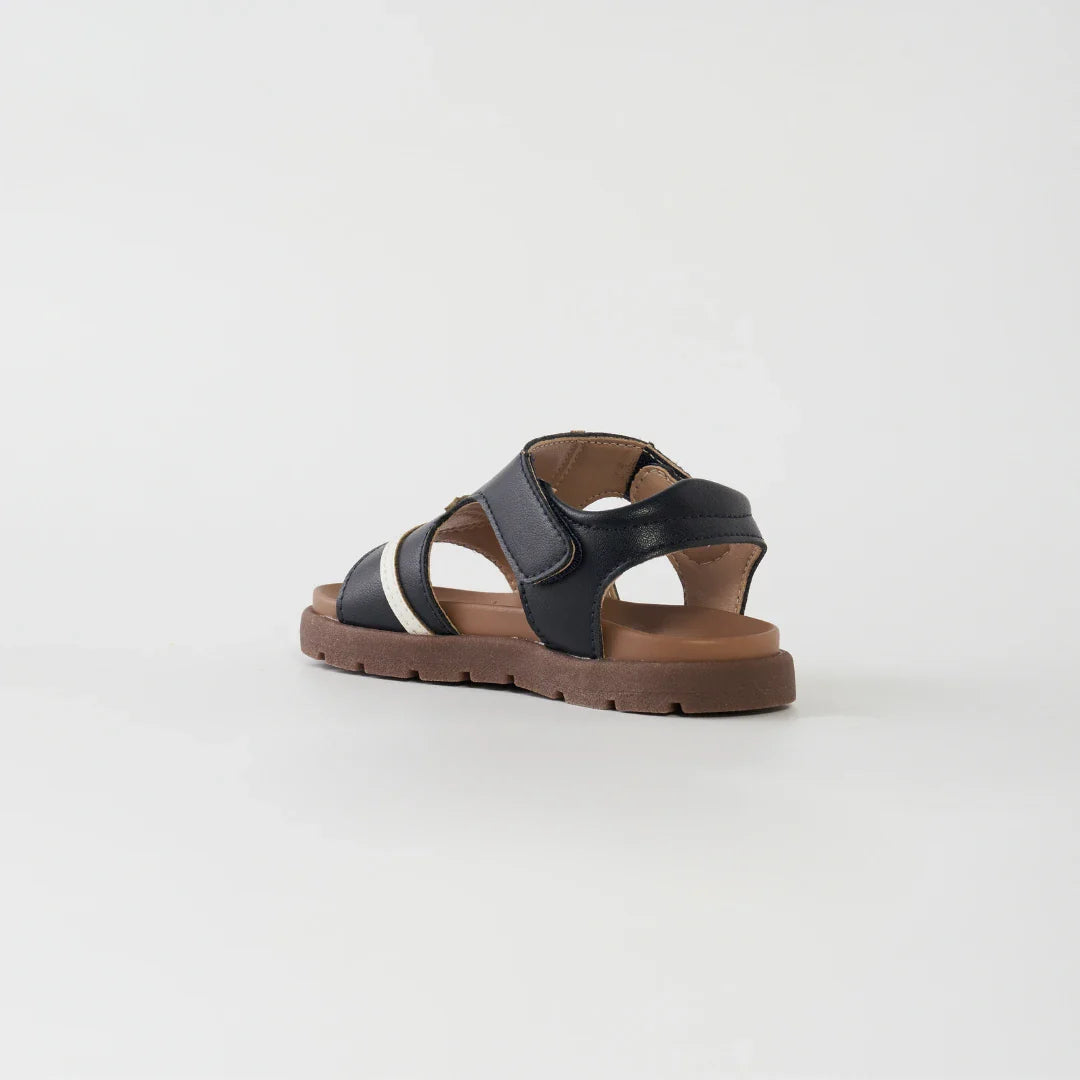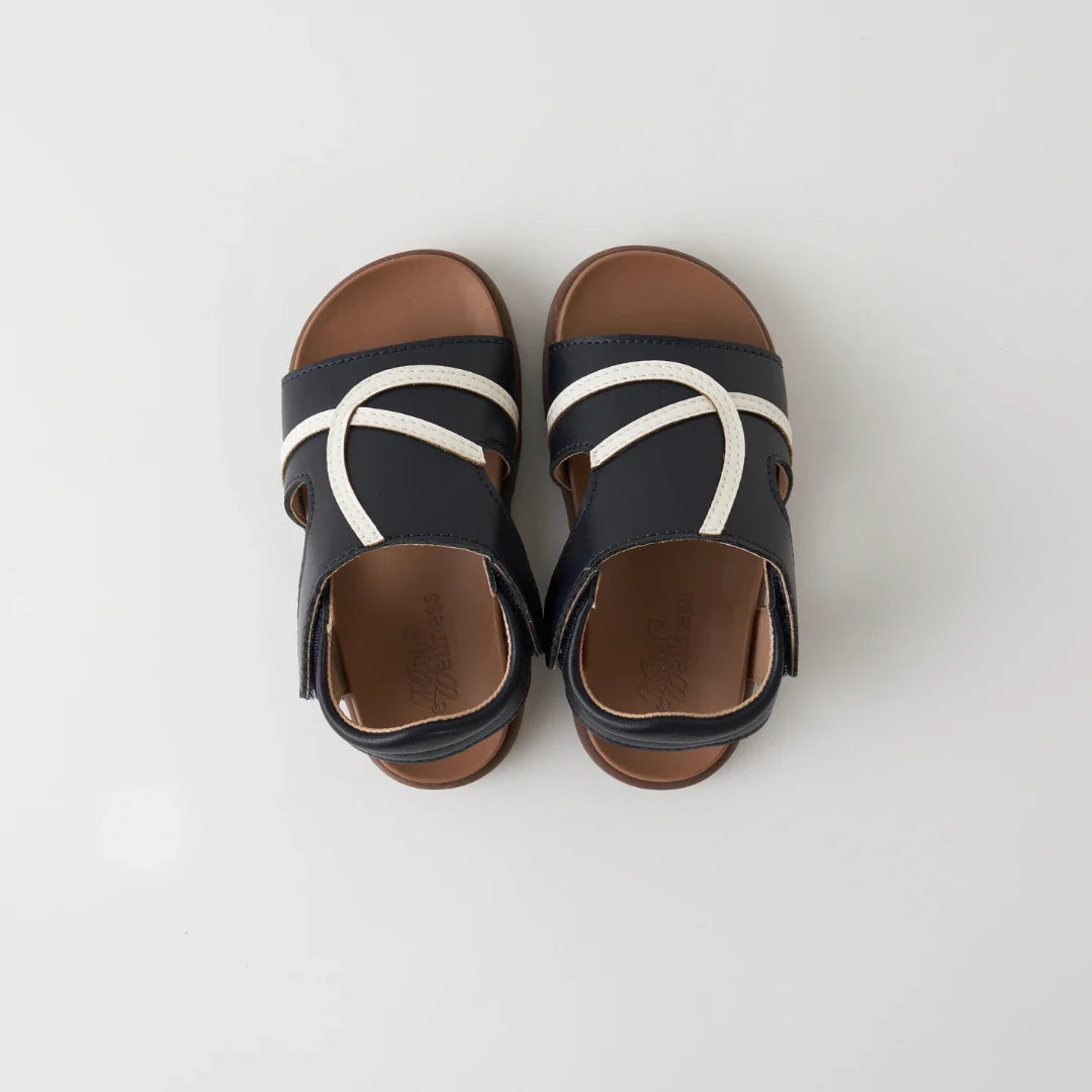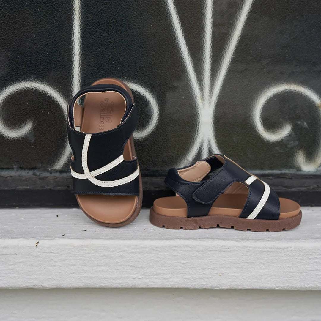 Adventure awaits with the Mini Trekker Sandals in Navy, designed to support every step of your little explorer. The deep navy shade, complemented by elegant cream detailing, offers a timeless and versatile look—perfect for family outings, park playdates, and special occasions. Featuring a soft, cushioned sole and an ergonomic footbed, these sandals provide the perfect balance of comfort and style. Whether strolling along the beach or running around the playground, these sandals ensure all-day ease with every step.