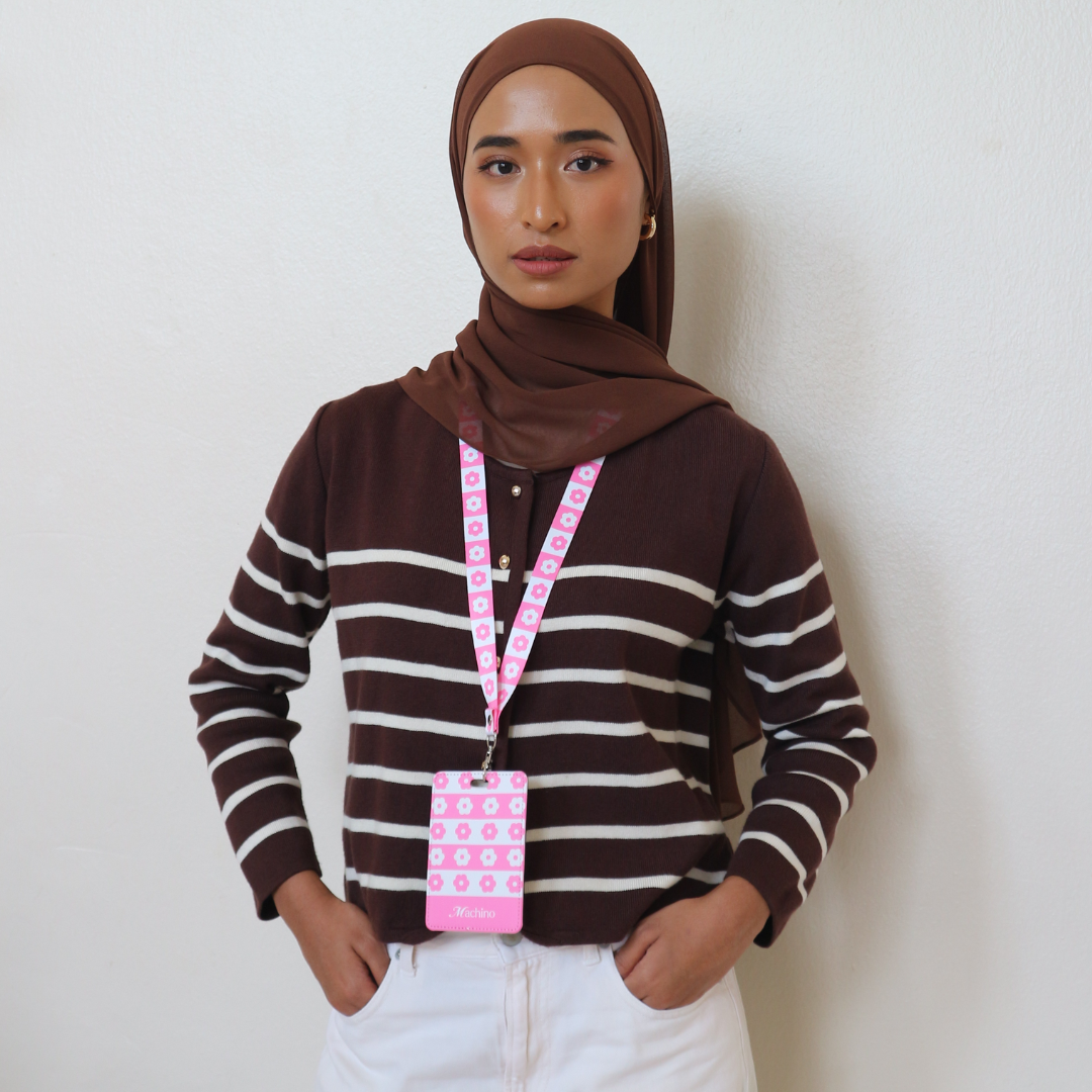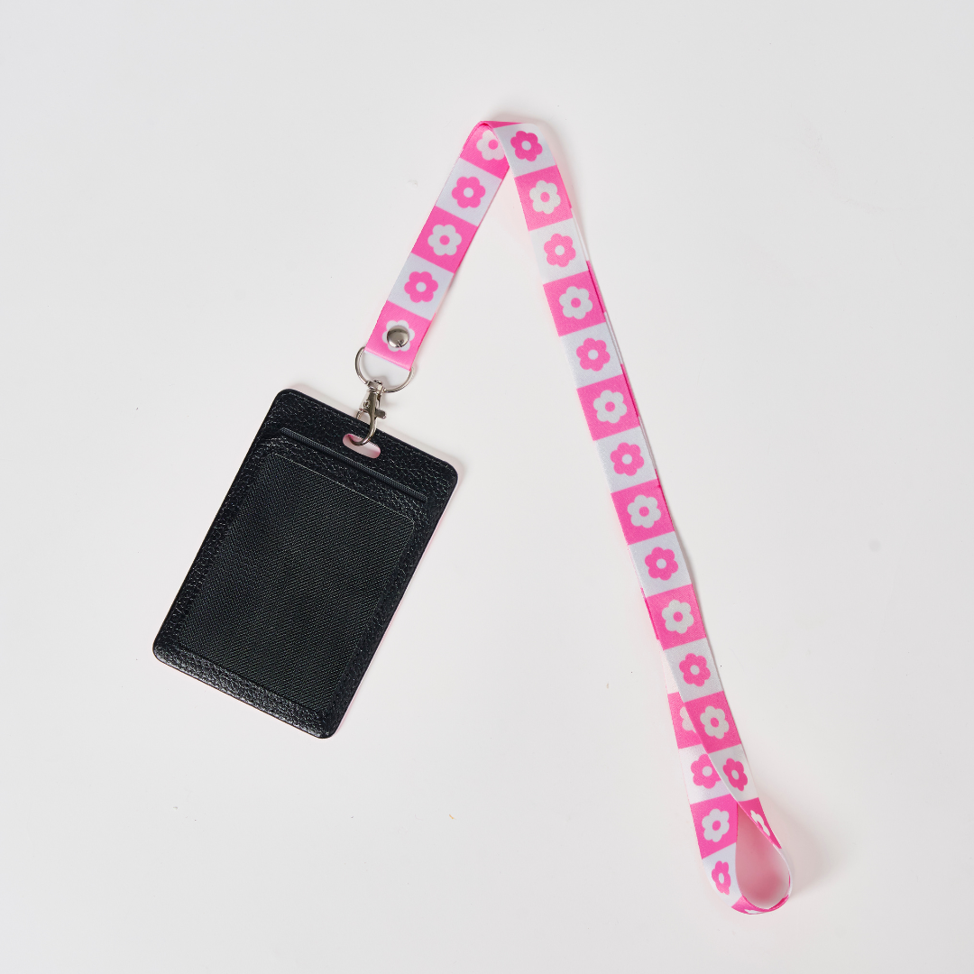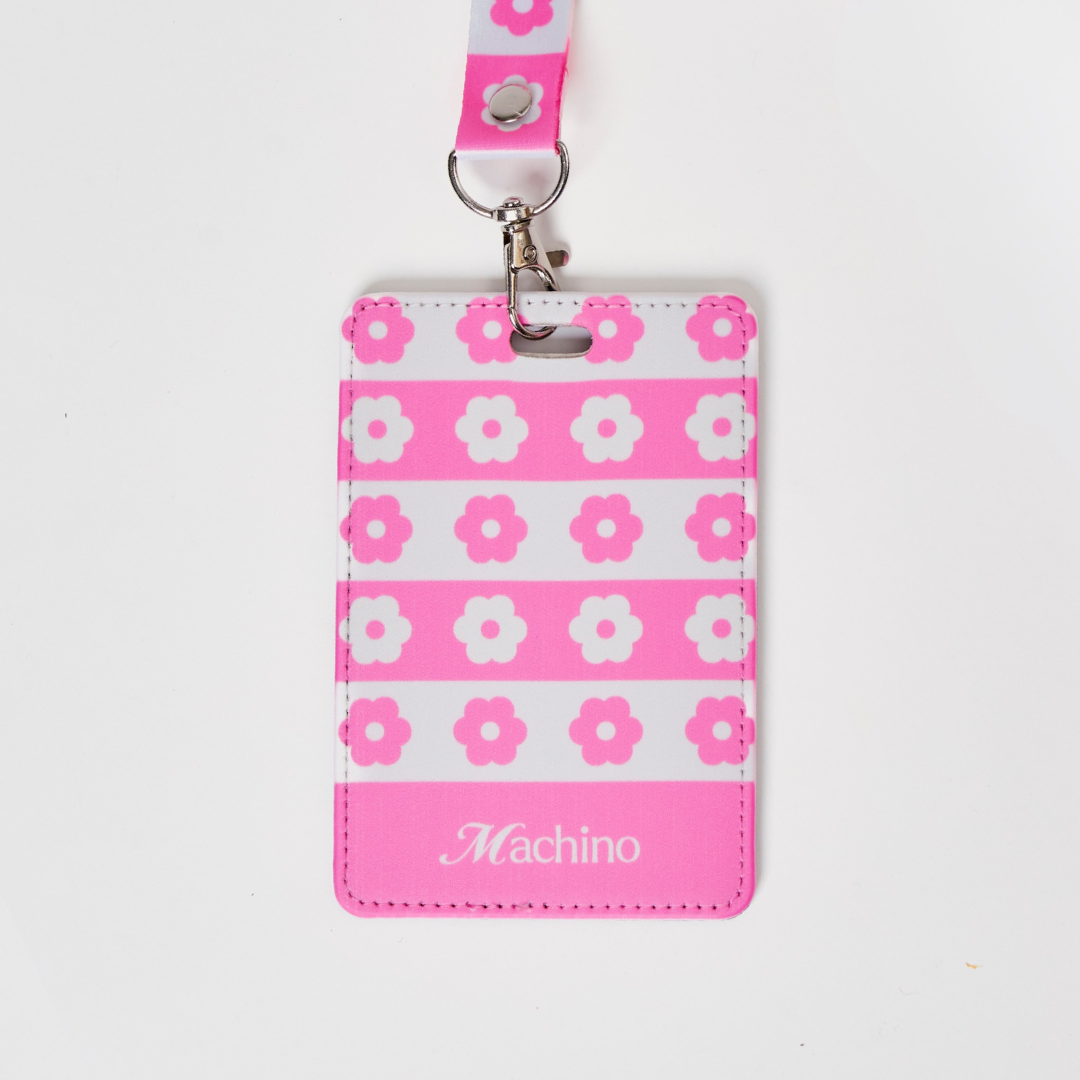 Introducing our brand new Machino Lanyard. Featuring our iconic Hana flower print in playful pink and white, this lanyard is perfect for holding your ID, cards, or keys—stylish, practical, and a little bit charming everywhere you go.