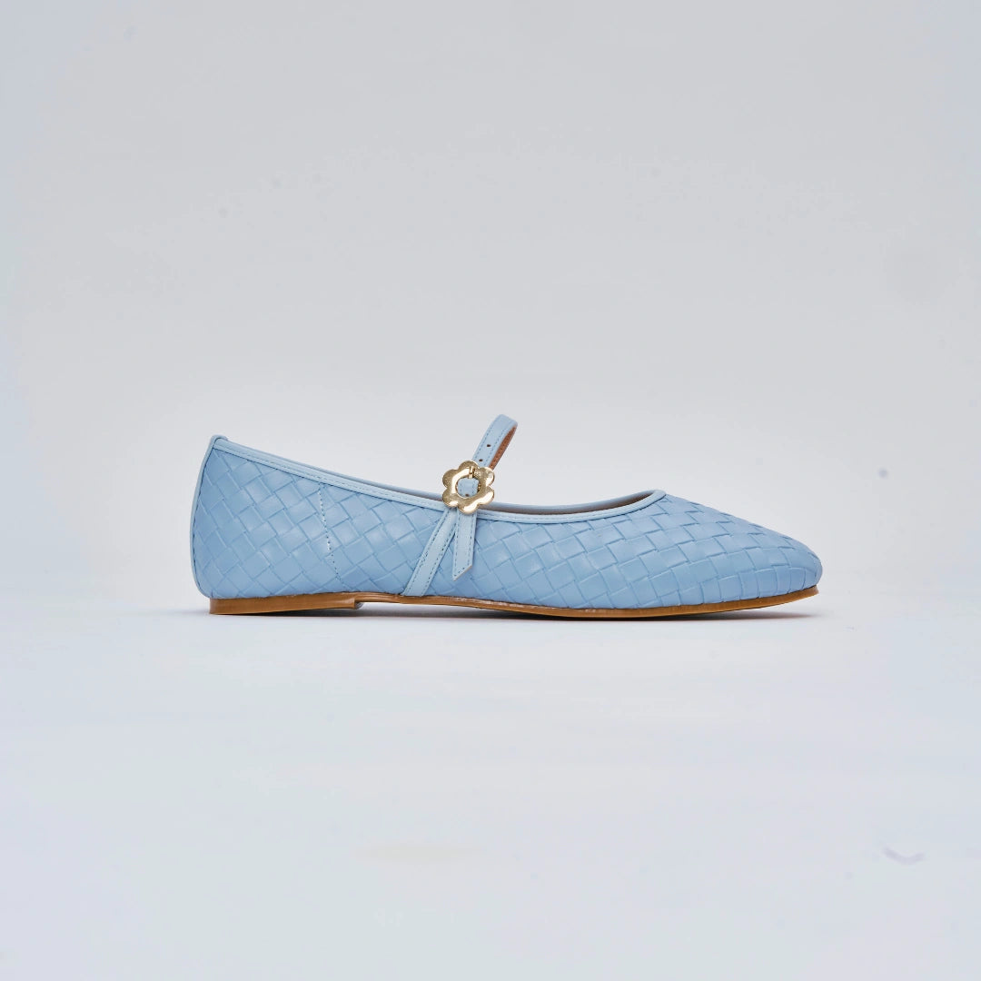 Grace meets craftsmanship with the Pointe Ballerina Flats in Woven Dusty Blue. Locally crafted with a light baby blue shade, perfectly matching with your wardrobe, this combo would immediately make any outfit light up the room!ย