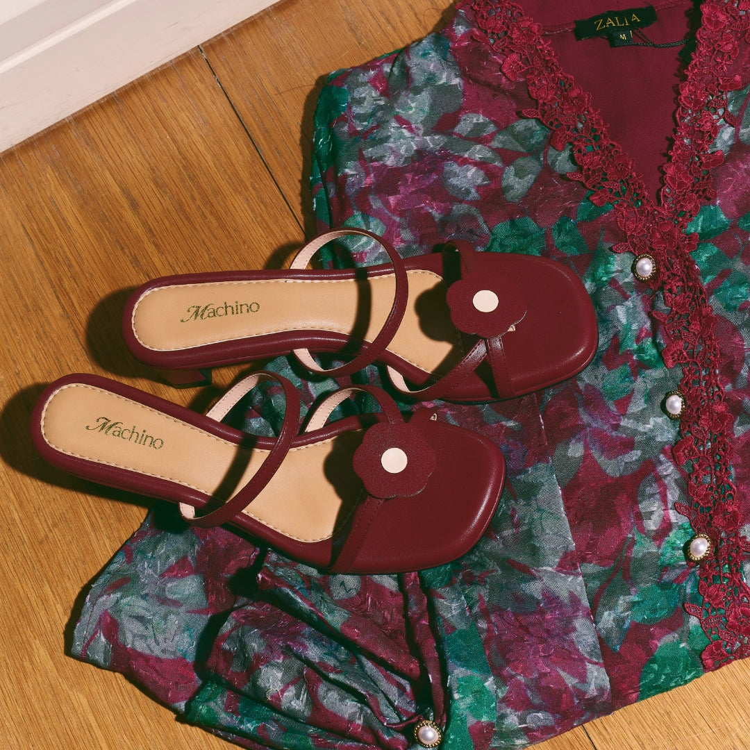 A timeless Machino favourite, reintroduced with refined comfort. The Hana OG Heels in Maroon is a refreshed take on our original Hana design, keeping the iconic silhouette while enhancing everyday wearability. Finished with Machino’s signature Hana flower detail, this pair delivers a playful yet elegant touch that remains instantly recognisable.