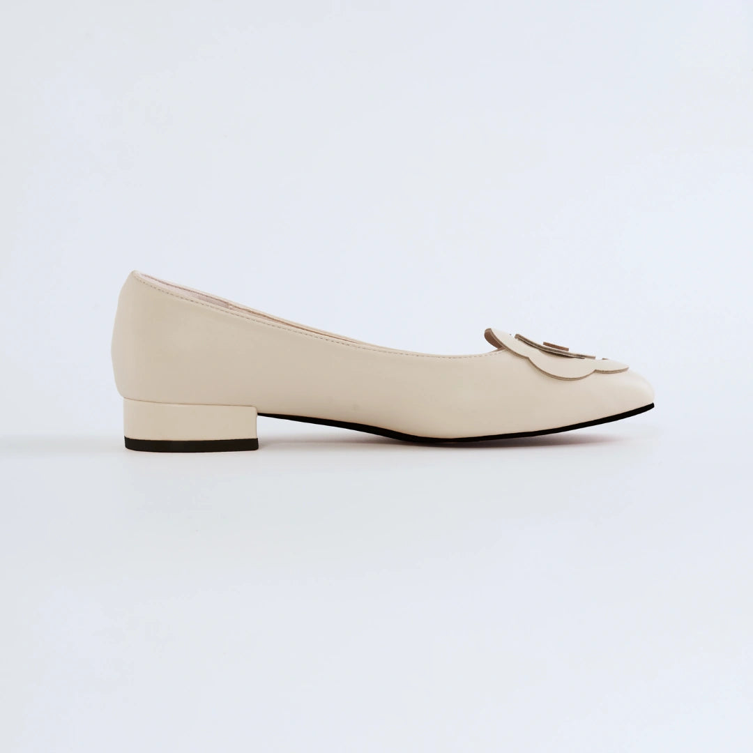 Looking for something covered? Look no further as we bring the perfect daily wear ballerina flats! The Bloom Ballerina Flats in Hana Beige are fully covered ladies footwear paired with our thick-foam insole and arch support to help relieve pressure on the ball of your foot. Designed with a creamy beige shade, these dressy flats are perfect for creating a timeless and elegant look. Our iconic 6-petal Hana flower is created with a double chop to create a more illustrative look for your slip-on ballet flats.