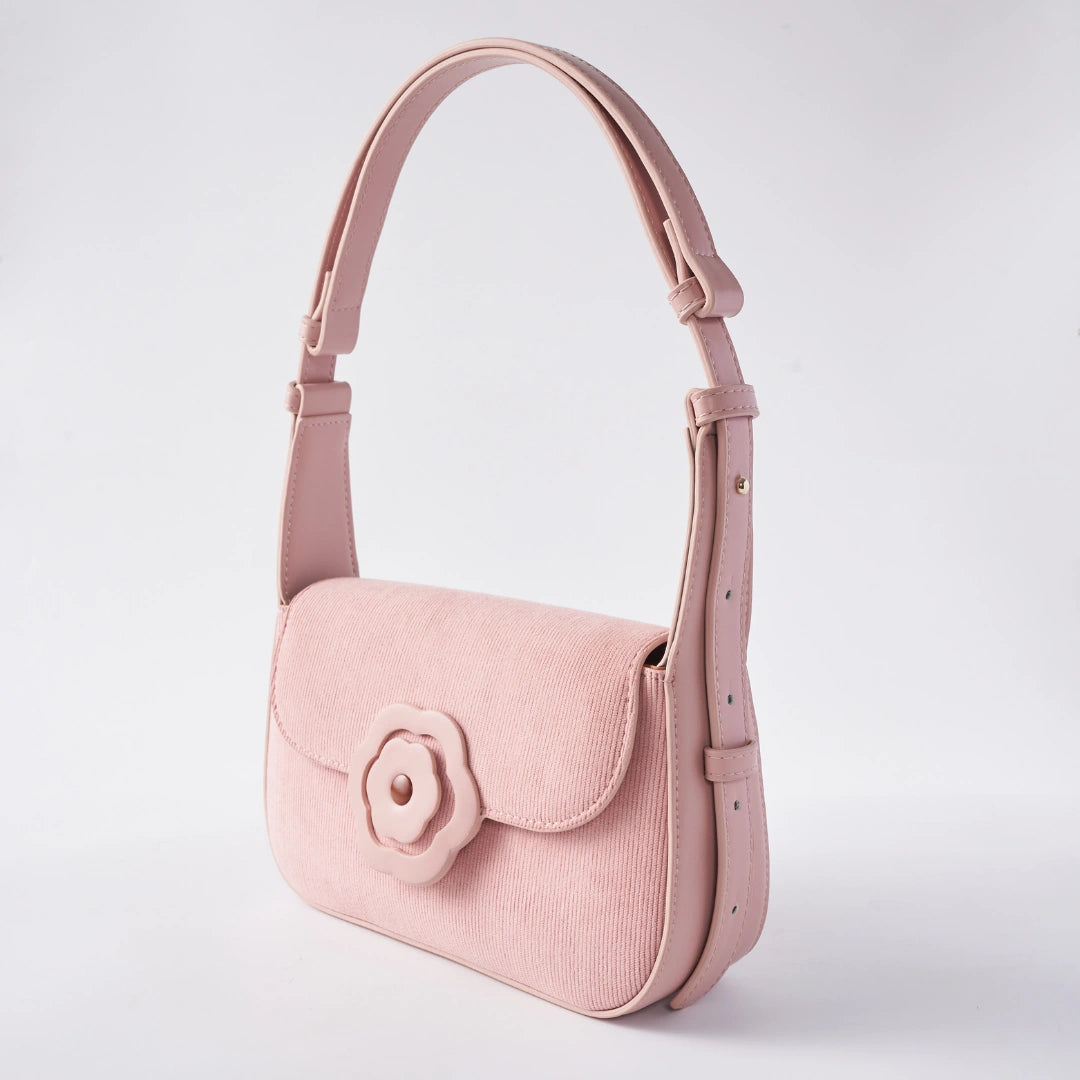 Soft, feminine, and subtly playful. The Iconic Sling Bag in Hana Dusty Pink Corduroy features a corduroy finish that adds warmth and texture to your look. Despite its compact size, it comfortably fits an iPhone Pro Max and daily essentials. With a magnetic flap for easy access and practical interior compartments, this bag balances charm with functionality beautifully.