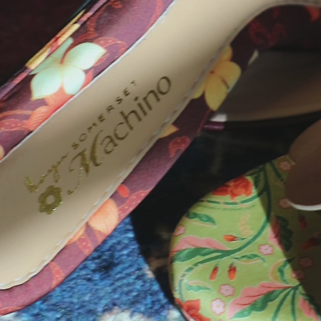 Rich, romantic, and statement-making. Keen Heels in Darling Maroon pairs deep maroon tones with Bayu Somerset’s floral heritage print for a look that feels both bold and timeless. Finished with Machino’s iconic PU Hana flower cut-out, this design brings together femininity, craftsmanship, and modern comfort in one elegant silhouette.
